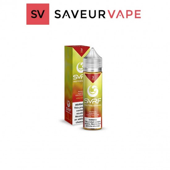 SVRF Refreshing E-juice tastes like an exquisite cocktail. Exotic papaya dances around your taste buds with tropical mango and juicy cantaloupe. This medley of fruit flavors will leave your mouth watering for more. Satisfy your nicotine cravings with this delicious concoction. Available in a 60 ml plastic drip proof bottle with a child resistant cap. SVRF E-liquids were developed by Saveurvape- the premium vape company behind Jackson Vapor Co., The Standard Vape and Blueprint.